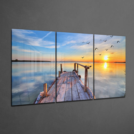 İndirimSahilde Günbatımı Mega Cam Tablo