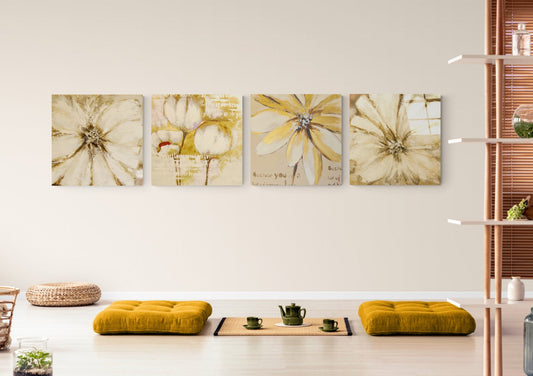 Sarı Çiçek Quadro 4 Parçalı Cam Tablo
