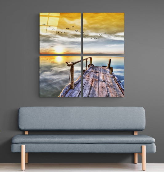 Gün Batımı Quadro 4 Parçalı Cam Tablo