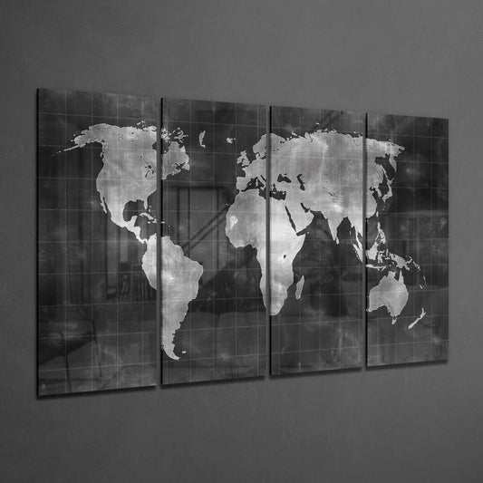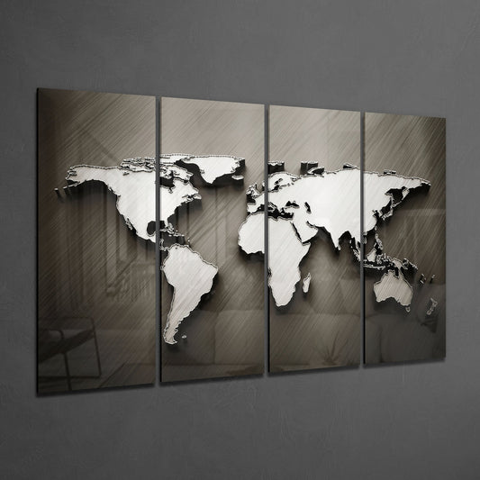 Dünya Haritası 4 Parça Mega Cam Tablo