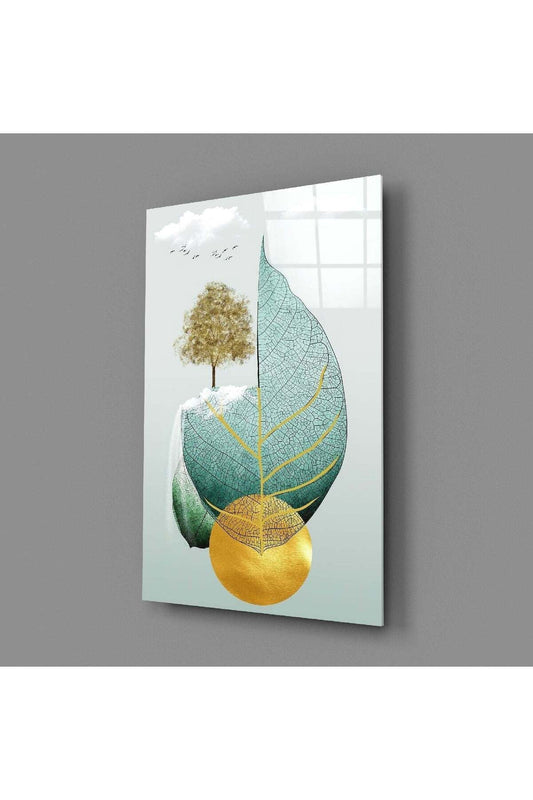 Yaprakta Ağaç Cam Tablo