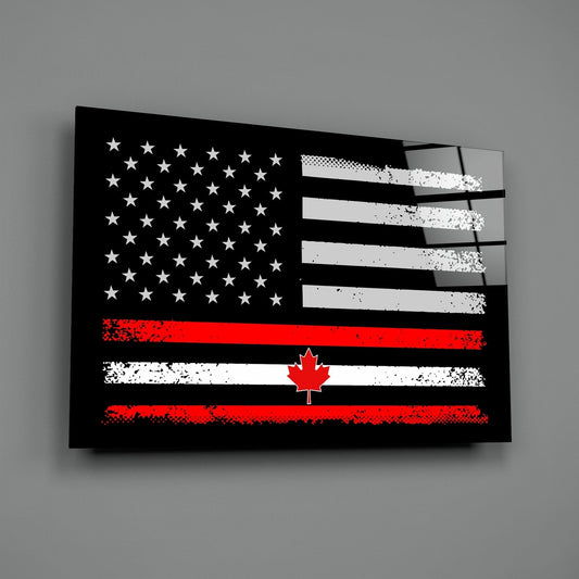 İndirimAbd-Kanada Bayrağı Cam Tablo