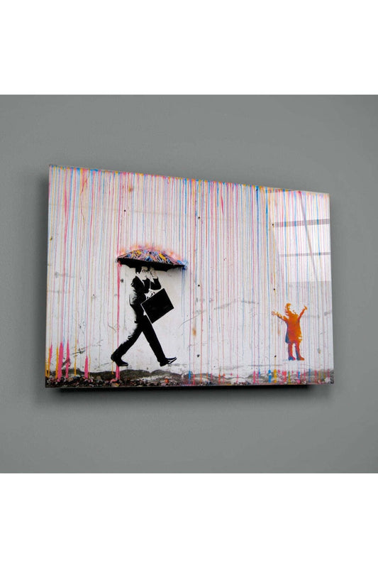 Yağlı Boya Efekti Soyut Desen Cam Tablo