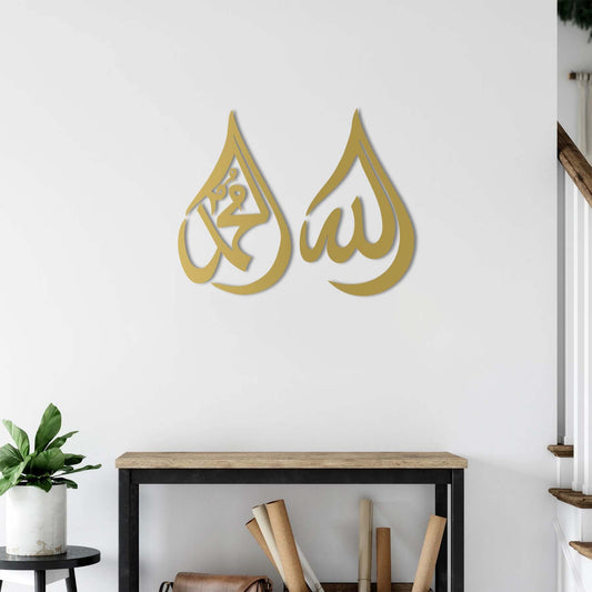 Allah ve Muhammed Damla İslami Metal Tablo