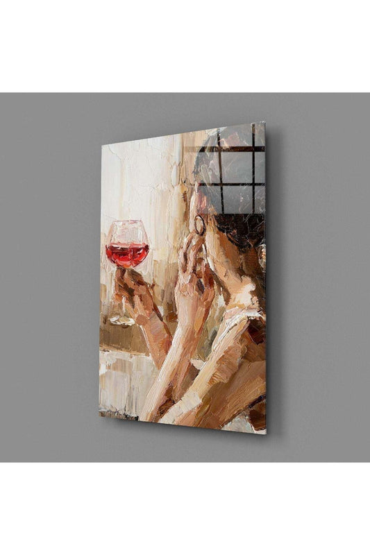 İndirimŞarap ve Kadın Cam Tablo