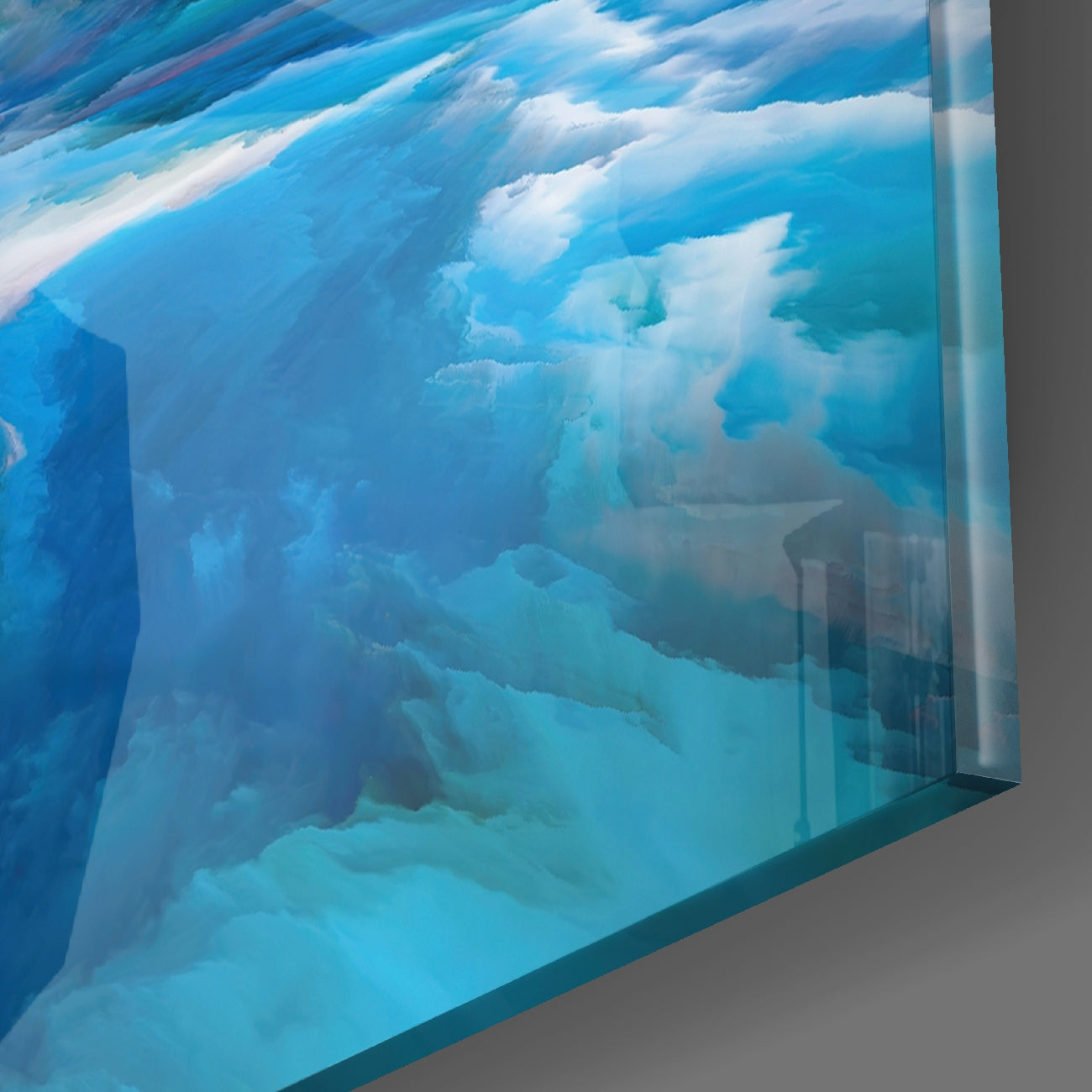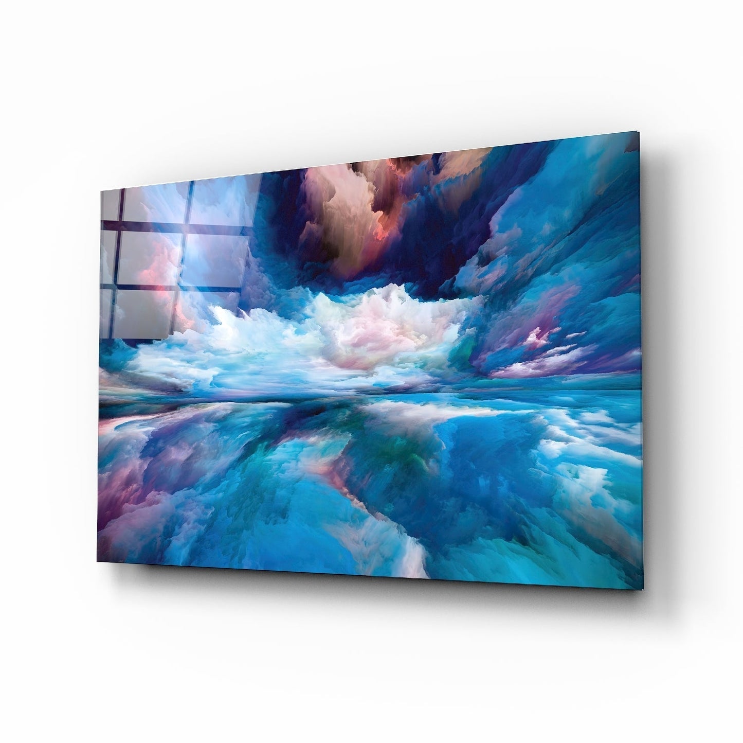 • The painting is printed directly onto the back surface of the glass. In this way, the print remains behind the glass and you see the high print quality with the elegance of glass.
