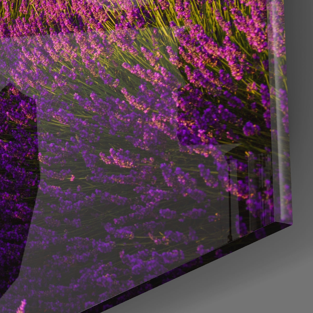 • The painting is printed directly onto the back surface of the glass. In this way, the print remains behind the glass and you see the high print quality with the elegance of glass.