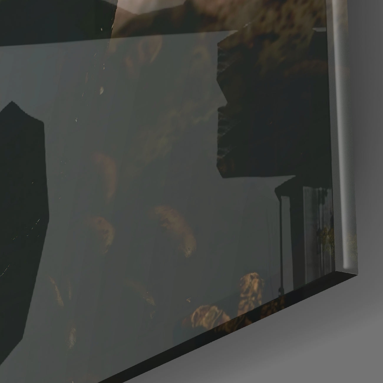 • The painting is printed directly onto the back surface of the glass. In this way, the print remains behind the glass and you see the high print quality with the elegance of glass.