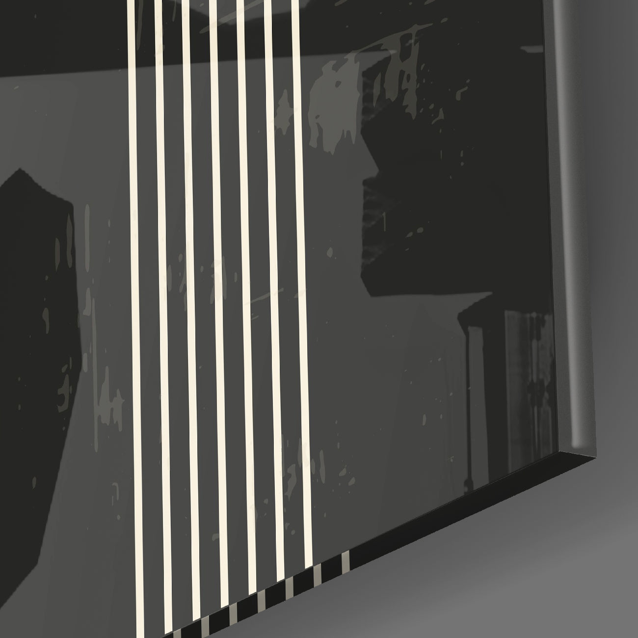 • The painting is printed directly onto the back surface of the glass. In this way, the print remains behind the glass and you see the high print quality with the elegance of glass.