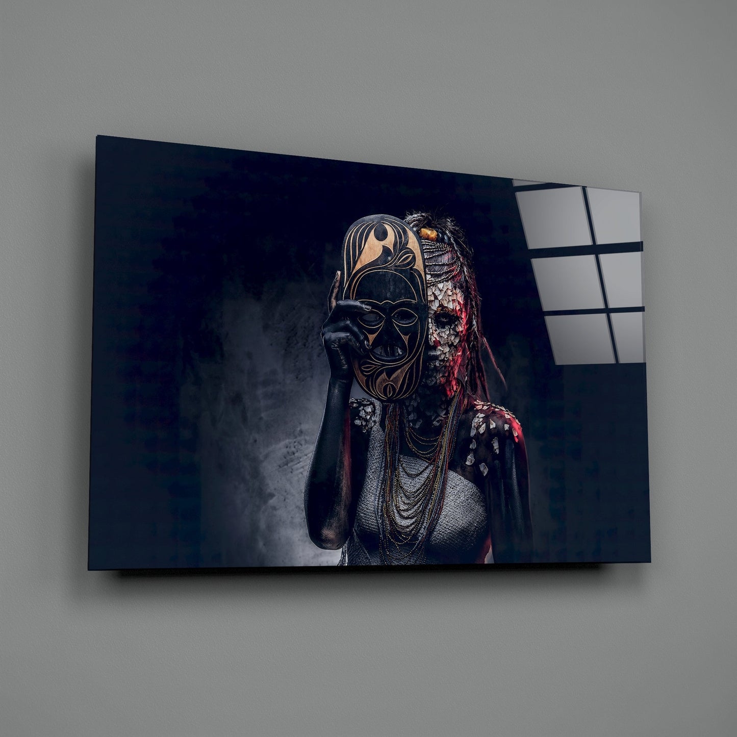 Behind the Mask Glass Painting