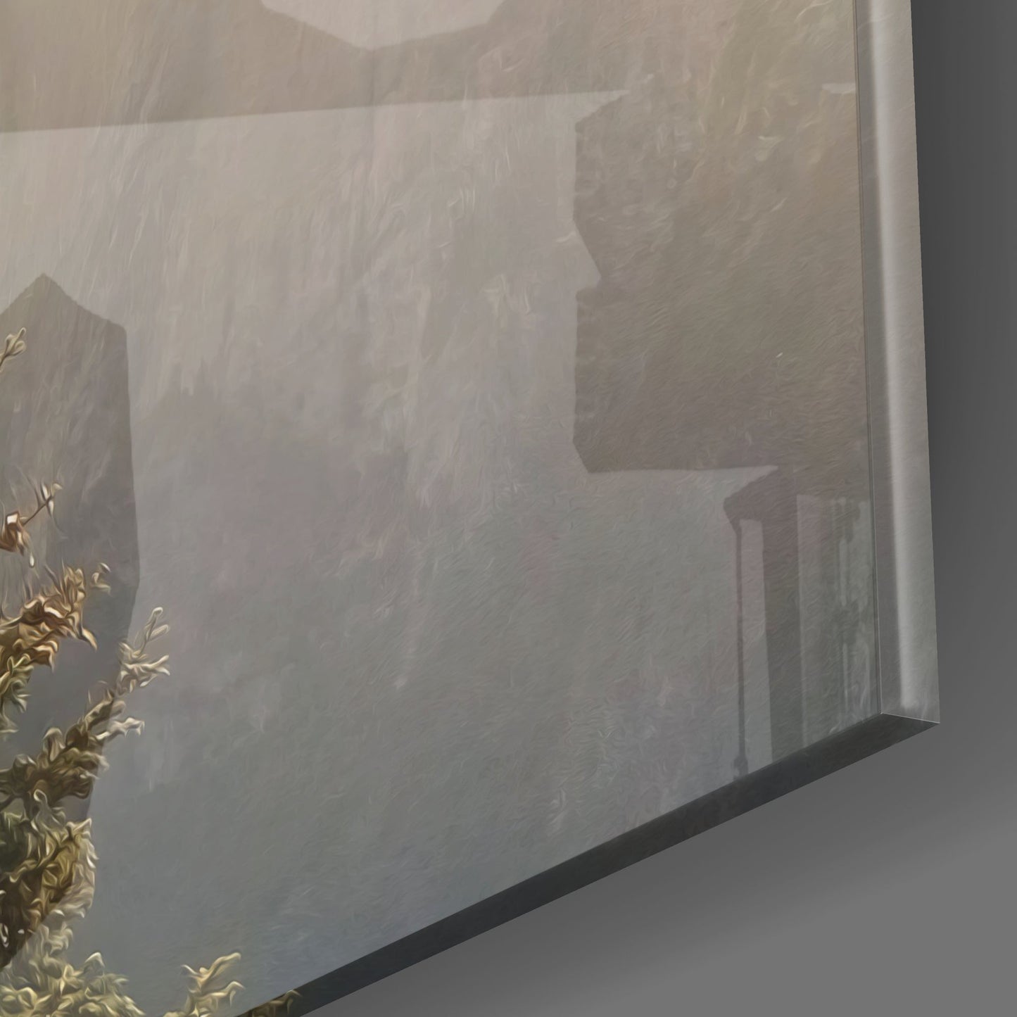 • The painting is printed directly onto the back surface of the glass. In this way, the print remains behind the glass and you see the high print quality with the elegance of glass.
