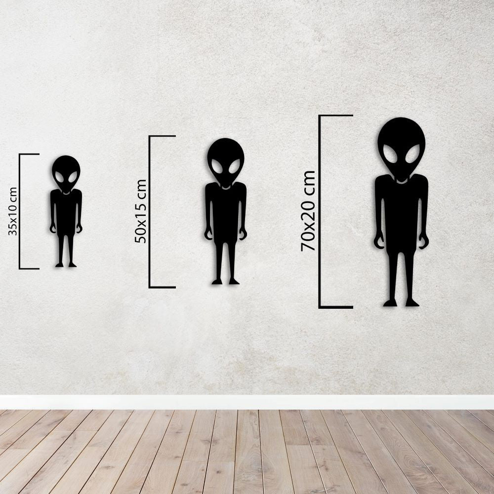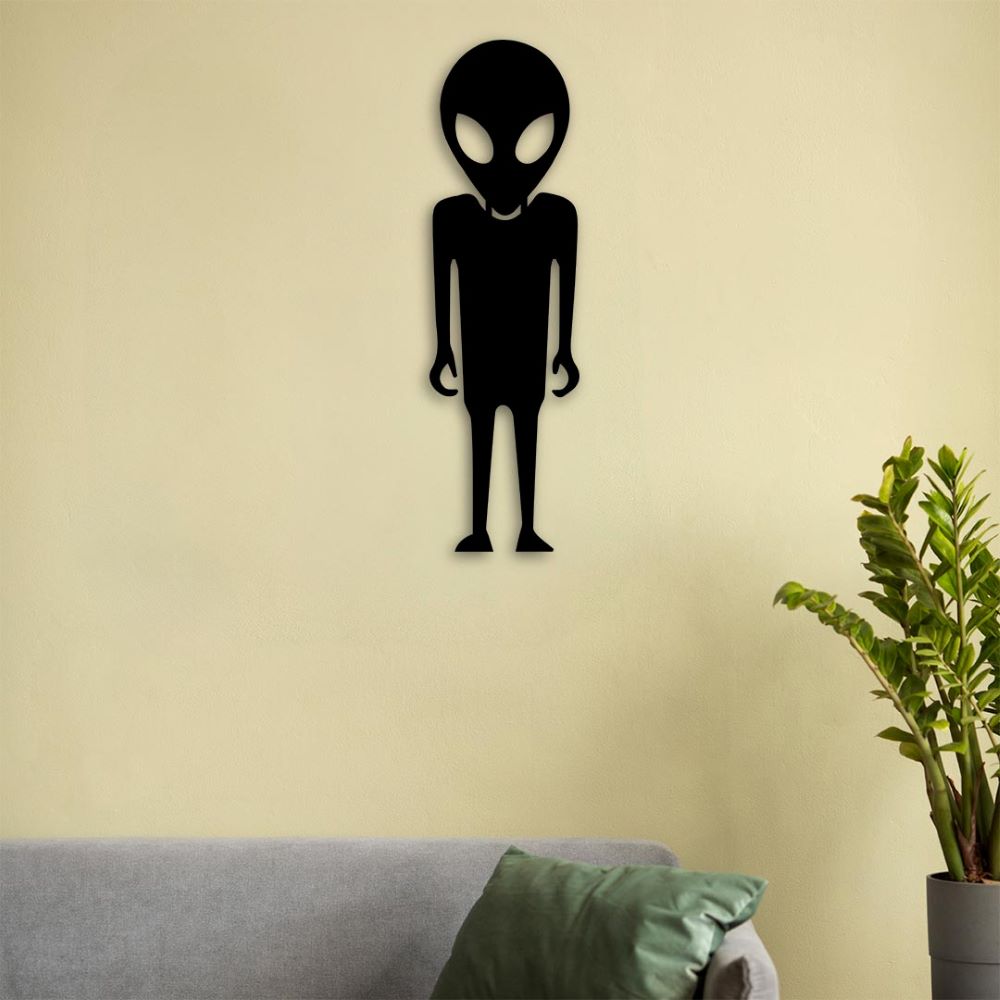 Bringing the mystery of space to your living space, the "Galactic Visitor Metal Wall Decor" is an ideal choice for those seeking a unique and eye-catching decor. Its alien figure creates a mystical and playful atmosphere in your home. Meticulously crafted using laser cutting technology, this decor is long-lasting thanks to its electrostatic powder coating. With its modern and minimal design, this piece blends seamlessly with any decor style and will add a unique touch to your room. Make room on your walls for those who love the mysteries of space!