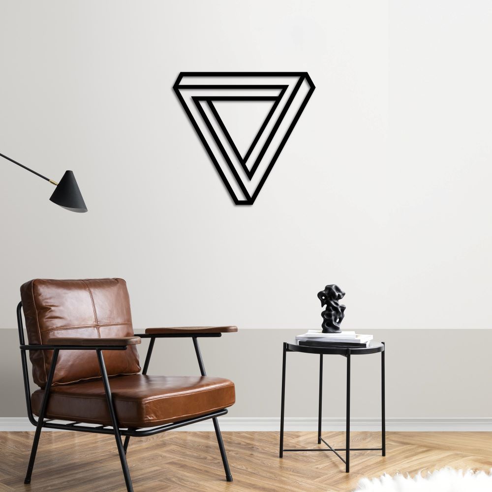 A blend of optical illusion and modern design, the "Infinity Triangle Metal Wall Decor" adds depth and mystery to your living space. This striking decor, with its three-dimensional geometric lines, adorns your walls with an extraordinary touch of minimalist style and aesthetics. Produced using laser-cut technology, this metal wall art boasts a durable construction and electrostatic powder coating for long-lasting durability. It's the perfect choice for those looking to create an artistic atmosphere in modern spaces. Bring the visual illusion of infinity to your wall!