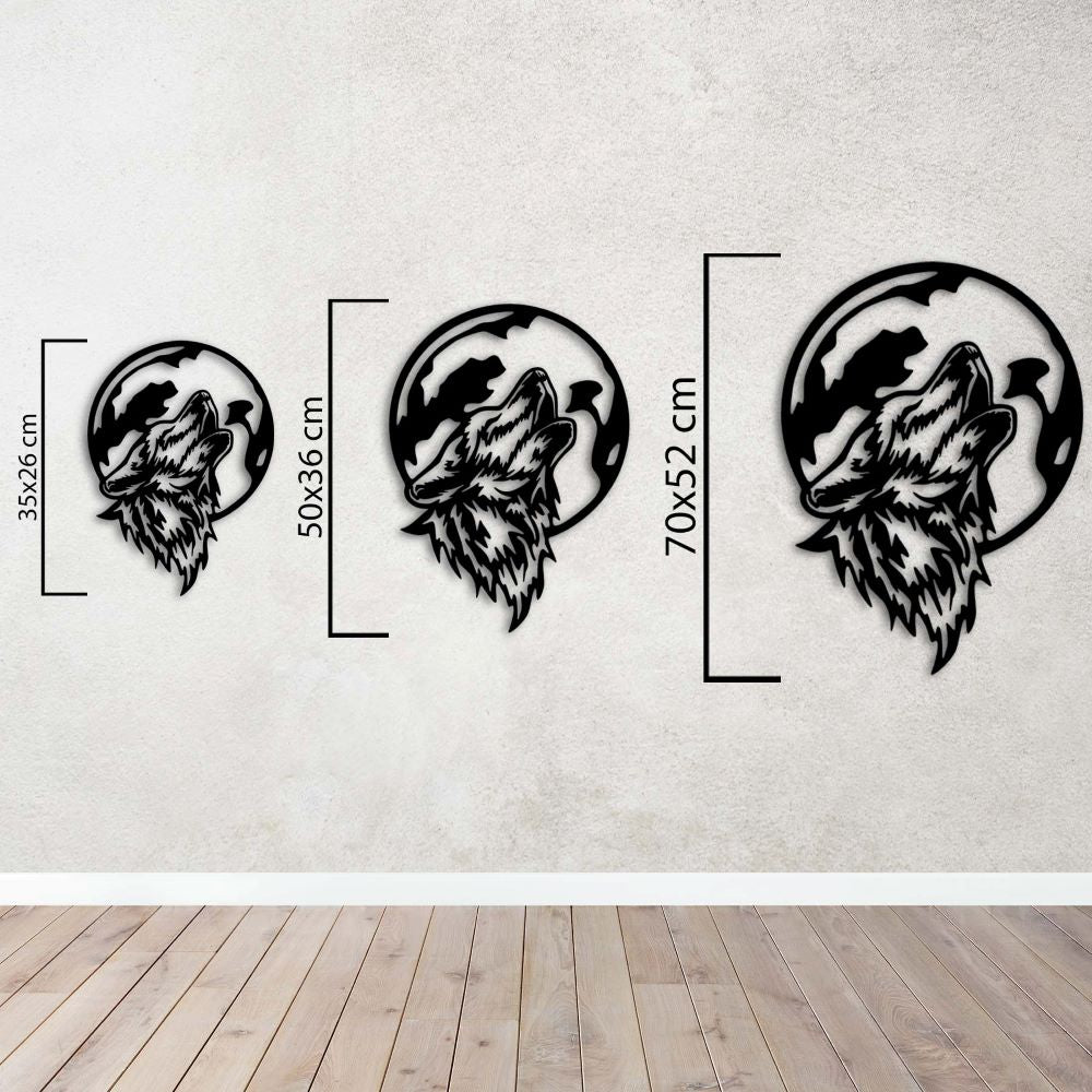 Designed for those seeking to create a mysterious and powerful atmosphere, the "Wolf in the Moonlight" metal wall decor adds a distinctive aesthetic to any space. This stylish decor, depicting a wolf howling in the moonlight, is a unique choice for nature and wildlife enthusiasts. With its modern and minimal touch, it adds dynamism to both your living spaces and offices. Manufactured using special laser-cutting technology, this product is long-lasting and durable. Order now and add a touch of wildlife to your decor!