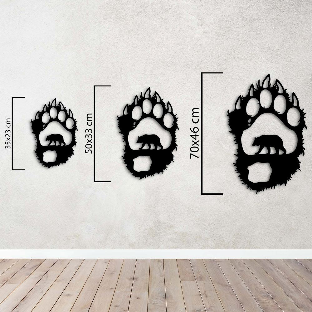 Bring the strength and determination of the wild into your living space! The "Traces of the Bear Trail" metal wall decor features a magnificent design that reflects the spirit of nature within a bear's paw. Symbolizing the depths of nature, this unique piece adds an aesthetic touch to your walls with its durable material and modern lines. It will be a favorite of both nature enthusiasts and those looking to reflect their style in their homes. A perfect complement to minimalist decor!