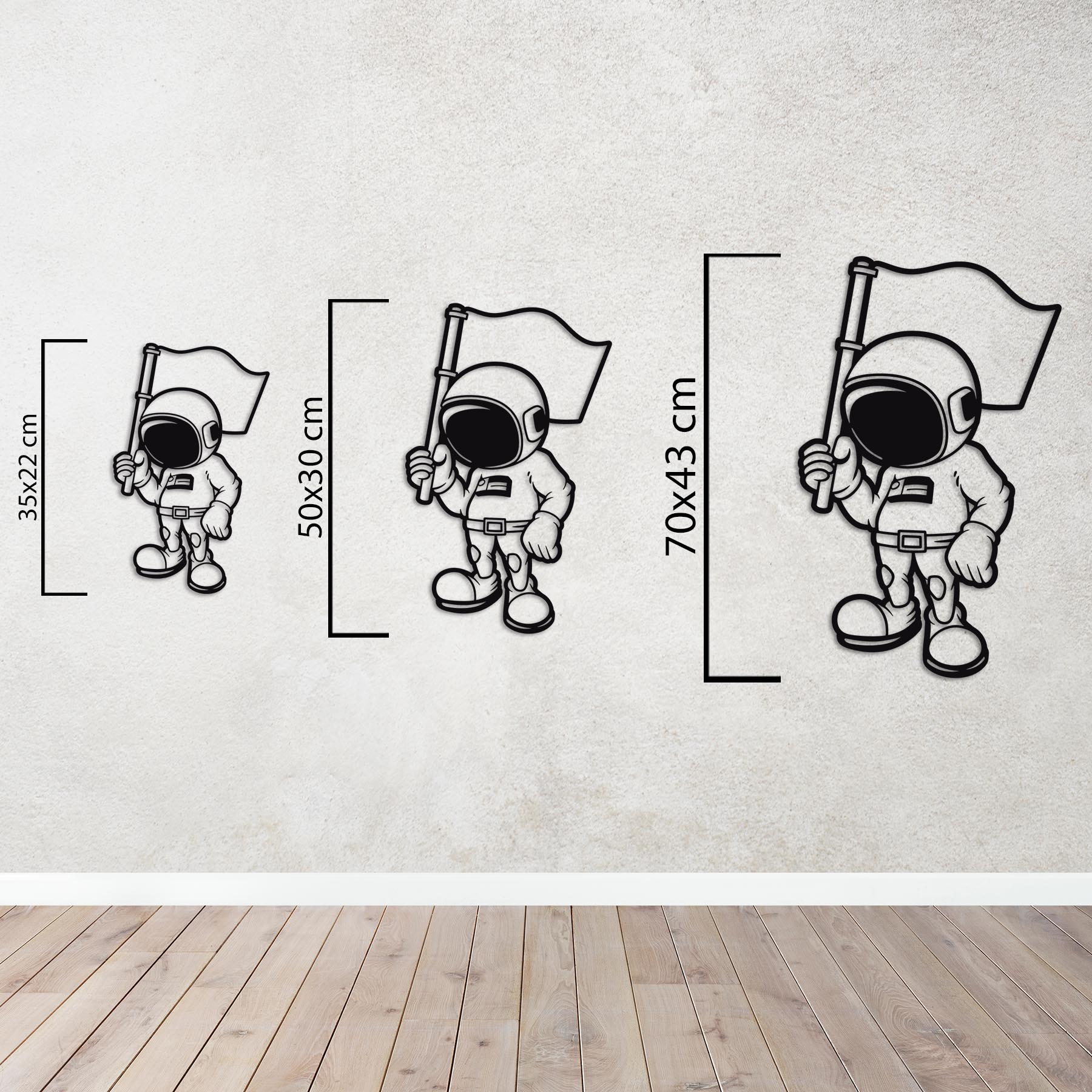 The "Galaxy Conqueror" metal wall decor is an inspiring symbol for kids who love space exploration. With his flag waving, this adorable space explorer looks like he's exploring his own galaxy—just like kids dream of!