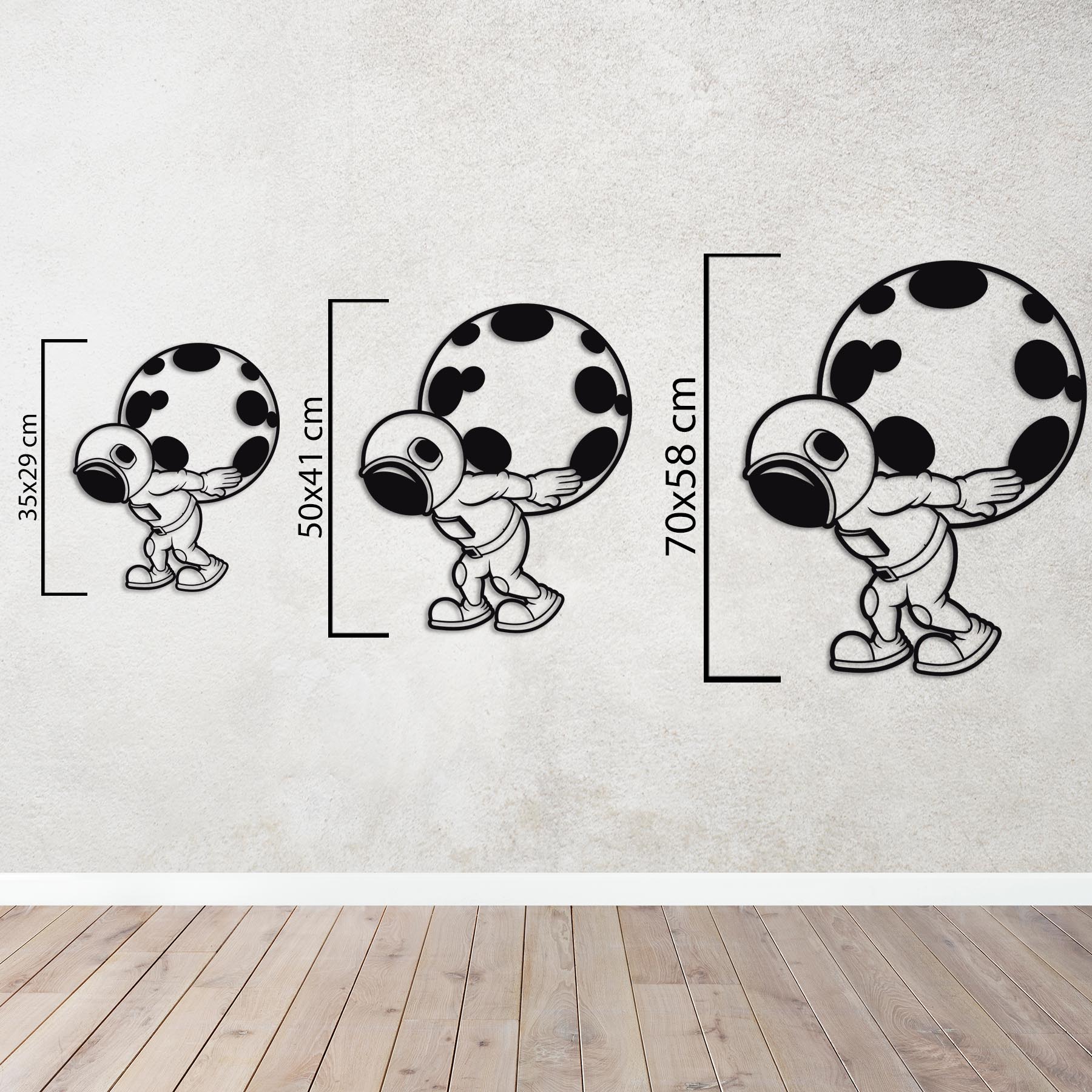 The "Astronaut Carrying the Moon" metal wall decor was designed as a powerful and inspiring detail that supports children's limitless imagination. The giant moon, carried by a tiny astronaut, also symbolizes children's sense of responsibility, imagination, and exploration.