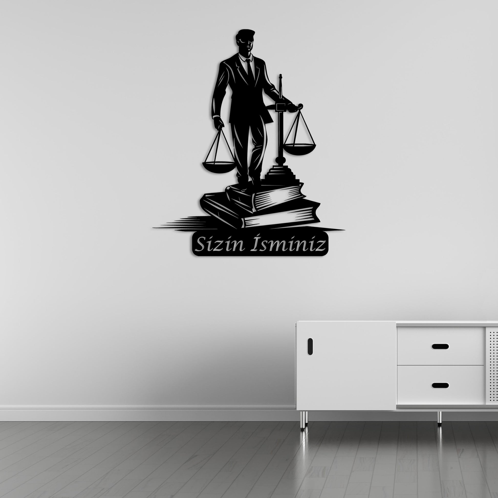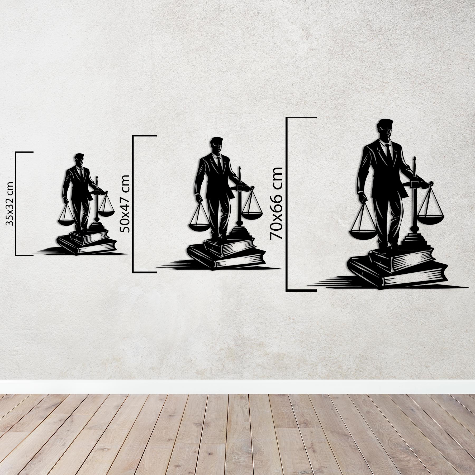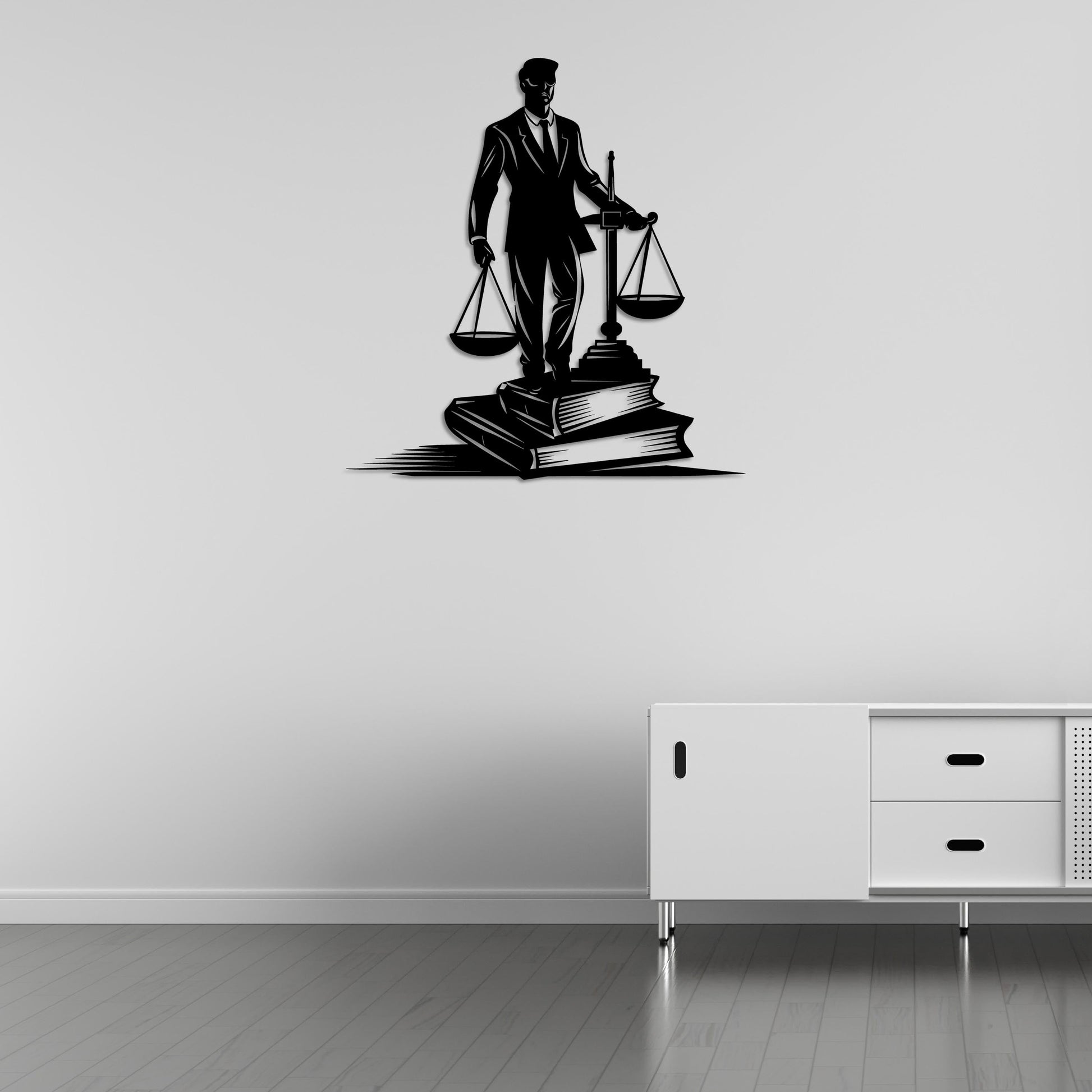 The metal wall decor “Representative of Justice” brings together the symbolic role of male lawyers working in the legal world with art.