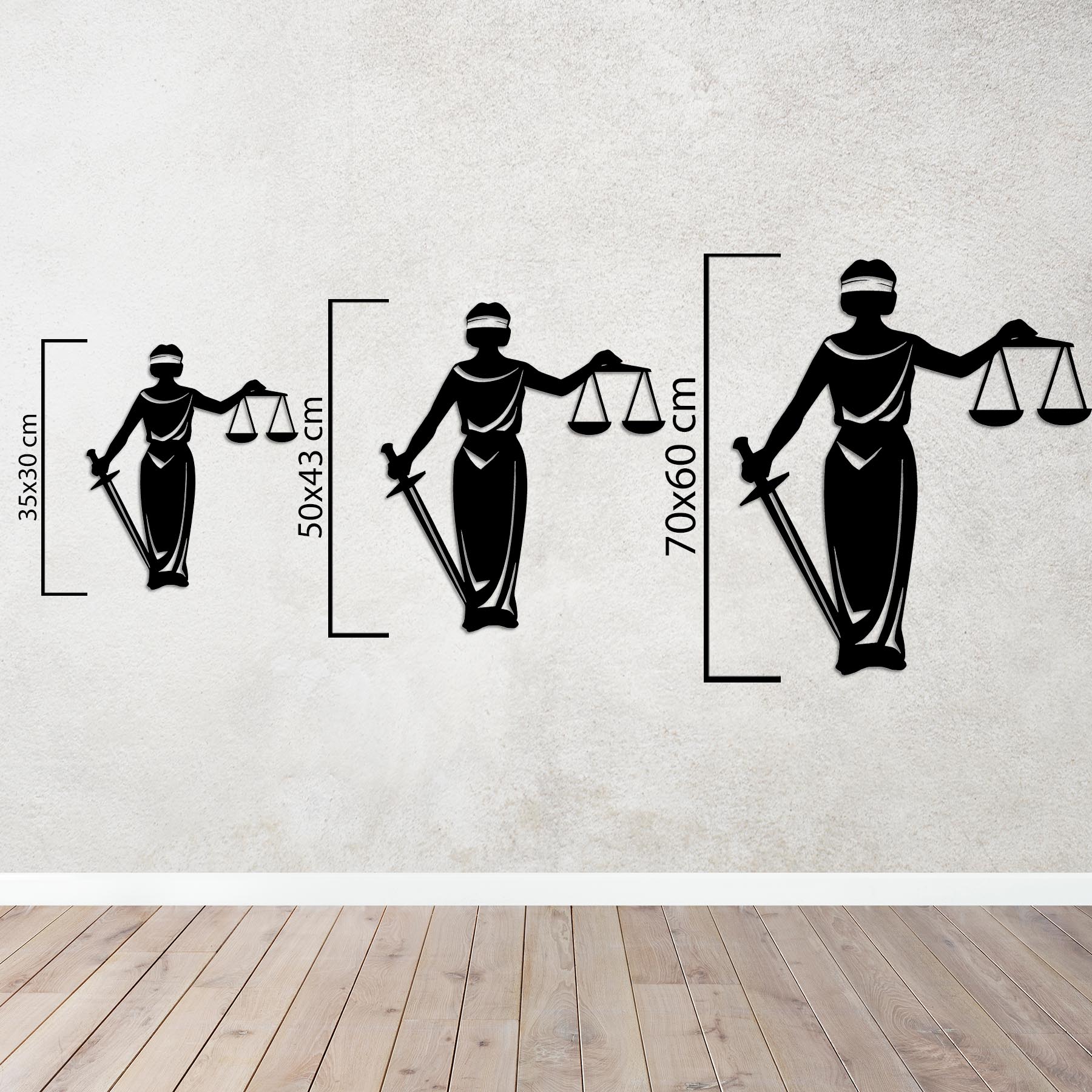 Impartiality, strength, and balance... The "Balance of Justice" metal wall decor is a simple and impressive interpretation of Lady Justice, an iconic figure in the legal world. Representing fairness with her scales, the power of law enforcement with her sword, and impartiality with her eyepatch, this iconic figure reflects respect for the principle of justice in every detail.