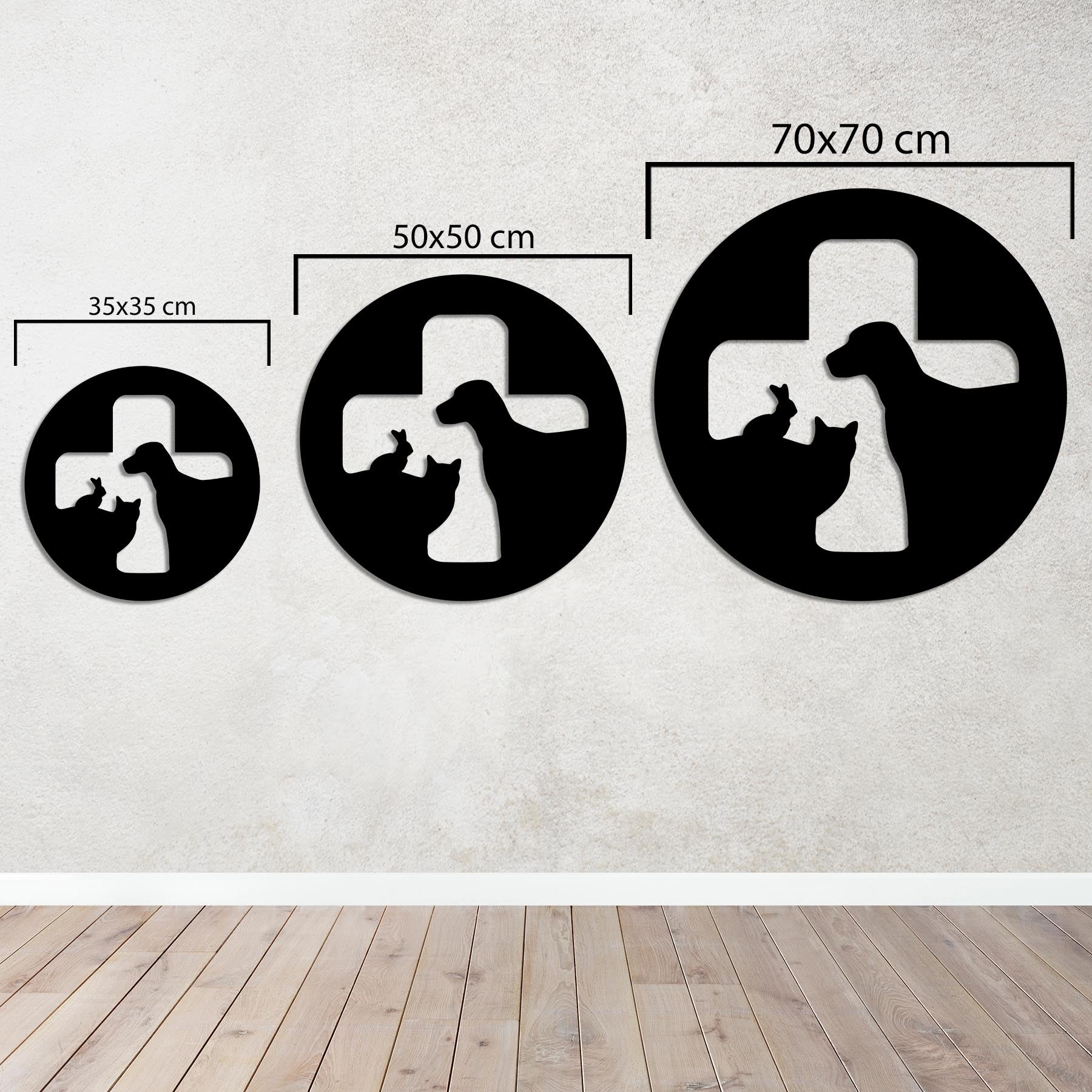 This special wall decor, designed for our furry friends who bring joy to our lives and touch our hearts with their friendship, combines the elegance, responsibility, and compassion of the veterinary profession. Combining rabbit, cat, and dog figures with veterinary symbols, this piece creates a welcoming yet professional atmosphere that fosters a sense of trust upon entering a clinic.