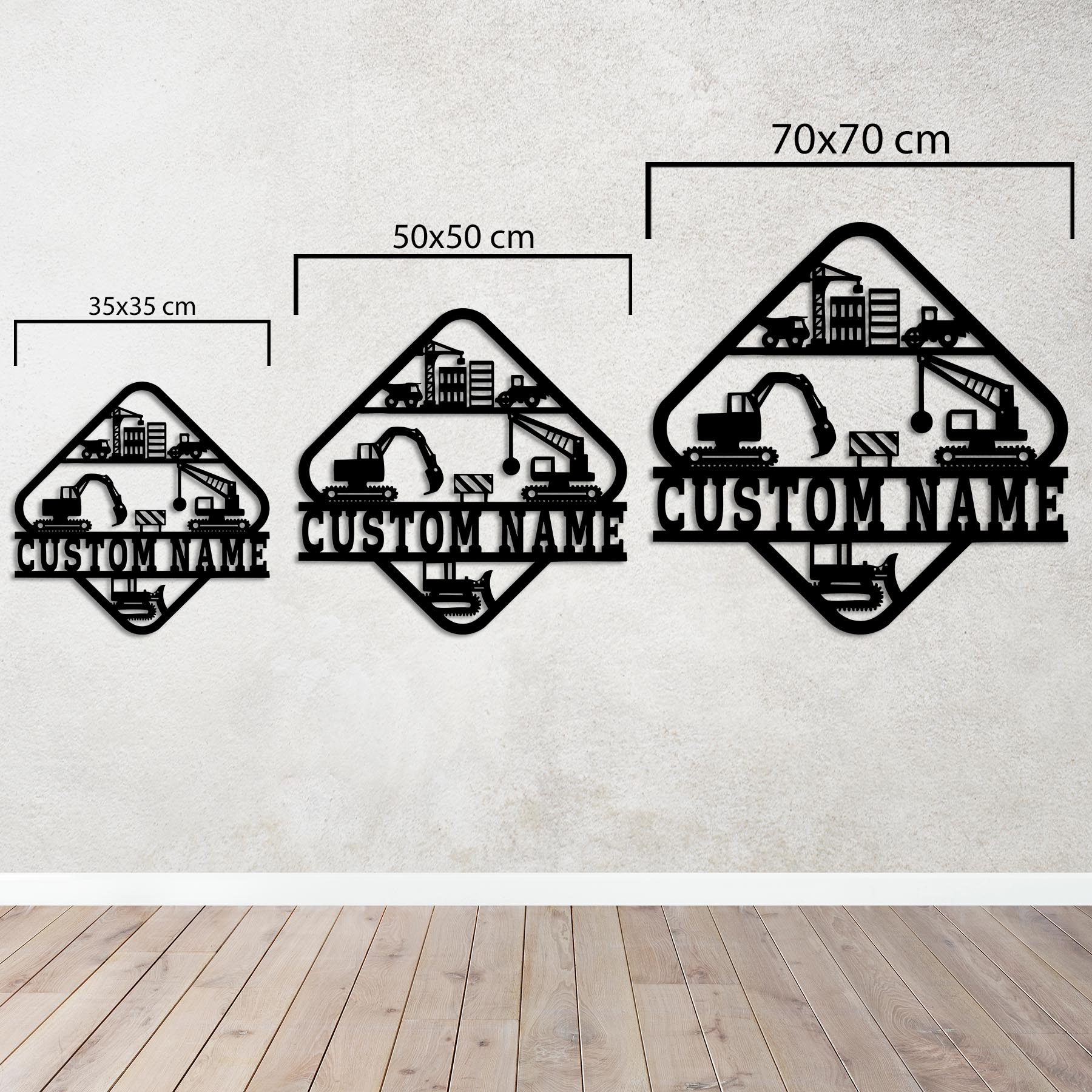 This unique metal decor, adorned with diggers, cranes, and towering structures, brings the dynamism of the construction process to your walls. Plus, you can personalize it with your own name, office name, or branding thanks to the dedicated area at the bottom.