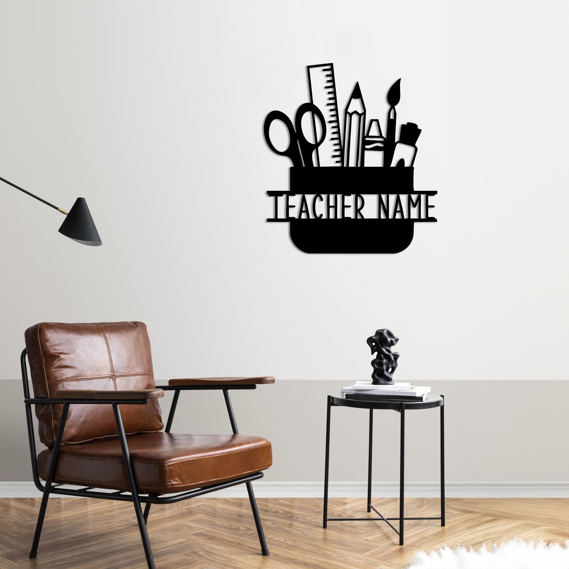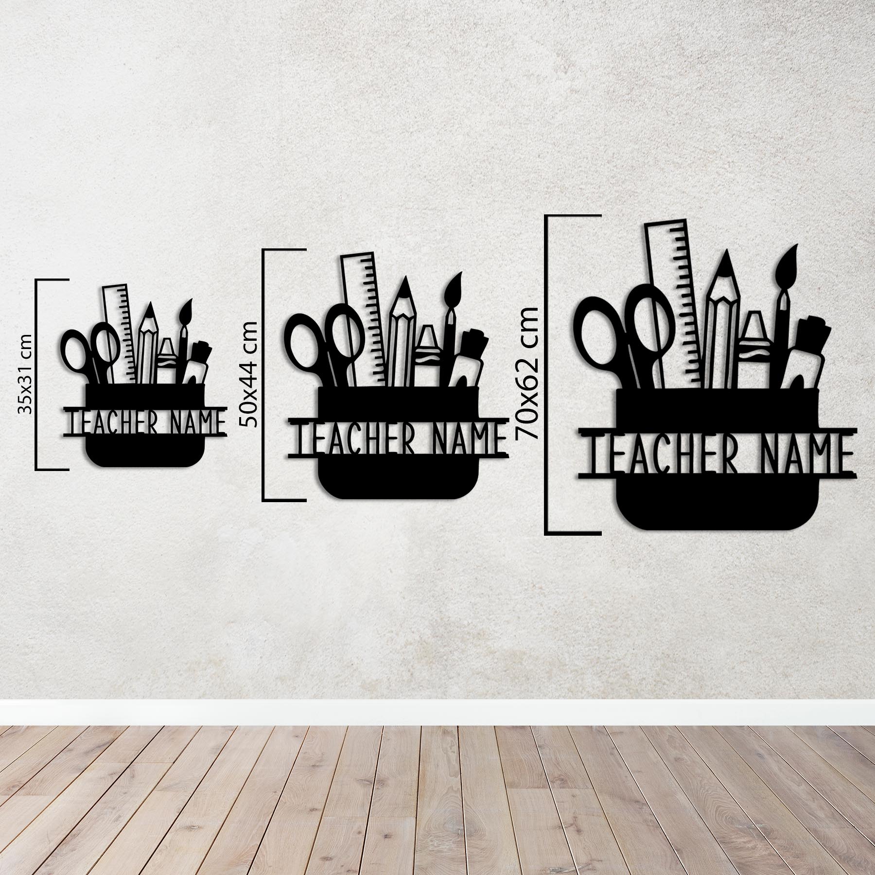 ✏️ This elegant design, filled with scissors, pencils, rulers, and brushes, symbolizes the productivity and creativity of teaching. Its pencil case-shaped silhouette offers a simple yet meaningful touch. This decor, personalized with a teacher's name, is a great choice for those looking to add warmth and inspiration to their classroom or workspace. 🎁 A unique choice for Teachers' Day or a special thank-you gift.