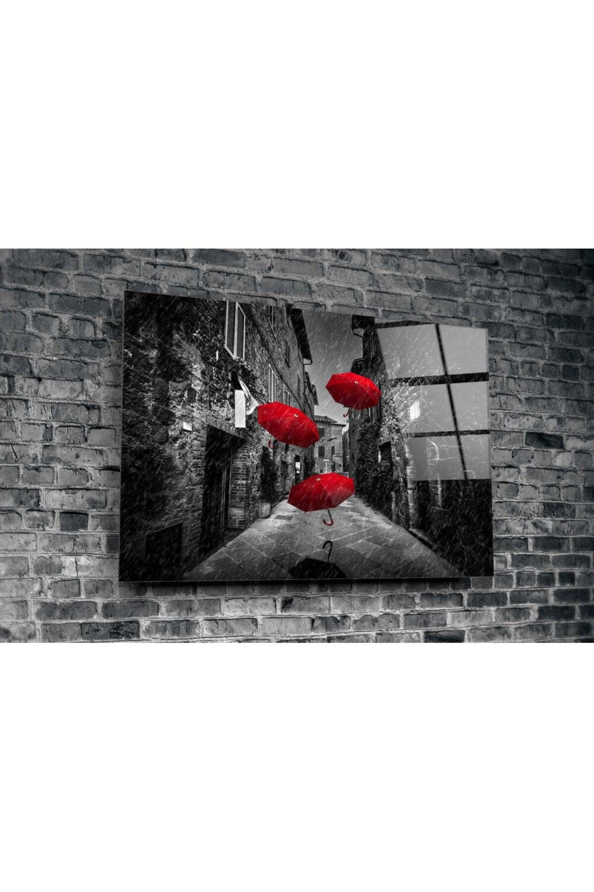 Red Umbrellas Glass Painting