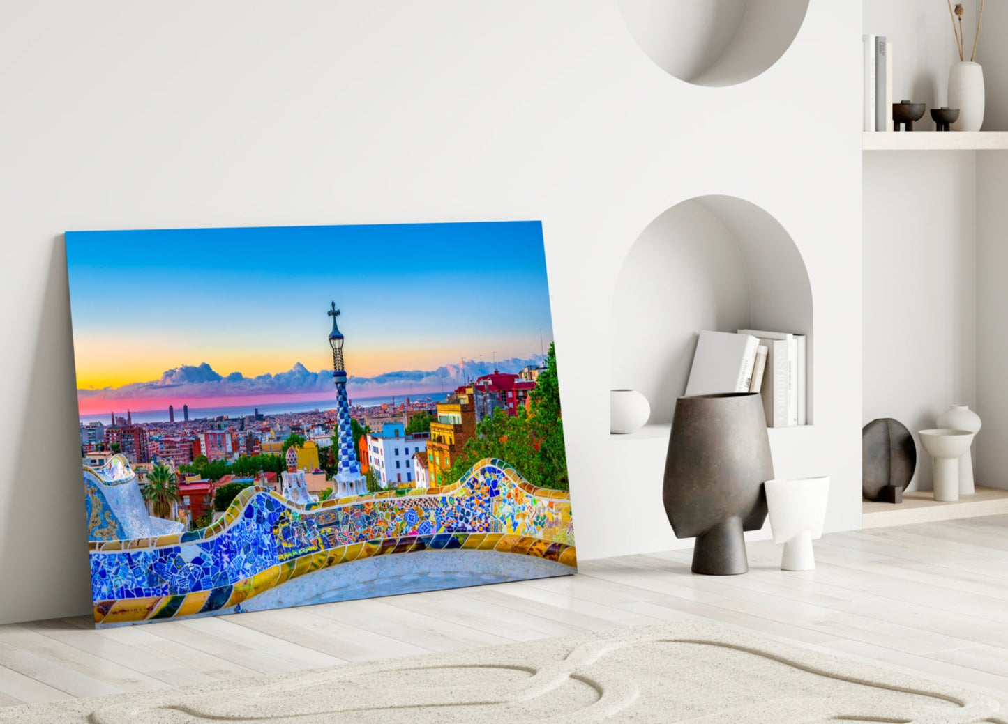• The painting is printed directly onto the back surface of the glass. In this way, the print remains behind the glass and you see the high print quality with the elegance of glass.